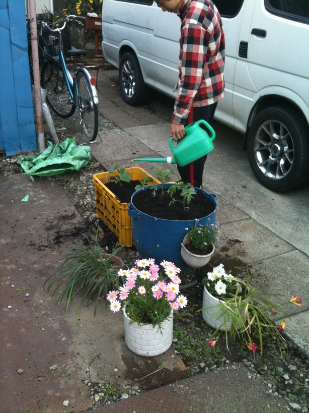 週末は、へたった二人と母ちゃんで花と野菜を植えました。