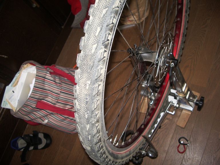少しでも軽く仕上げようと思い、前輪のホイールを物置から引っ張り出してみました。
