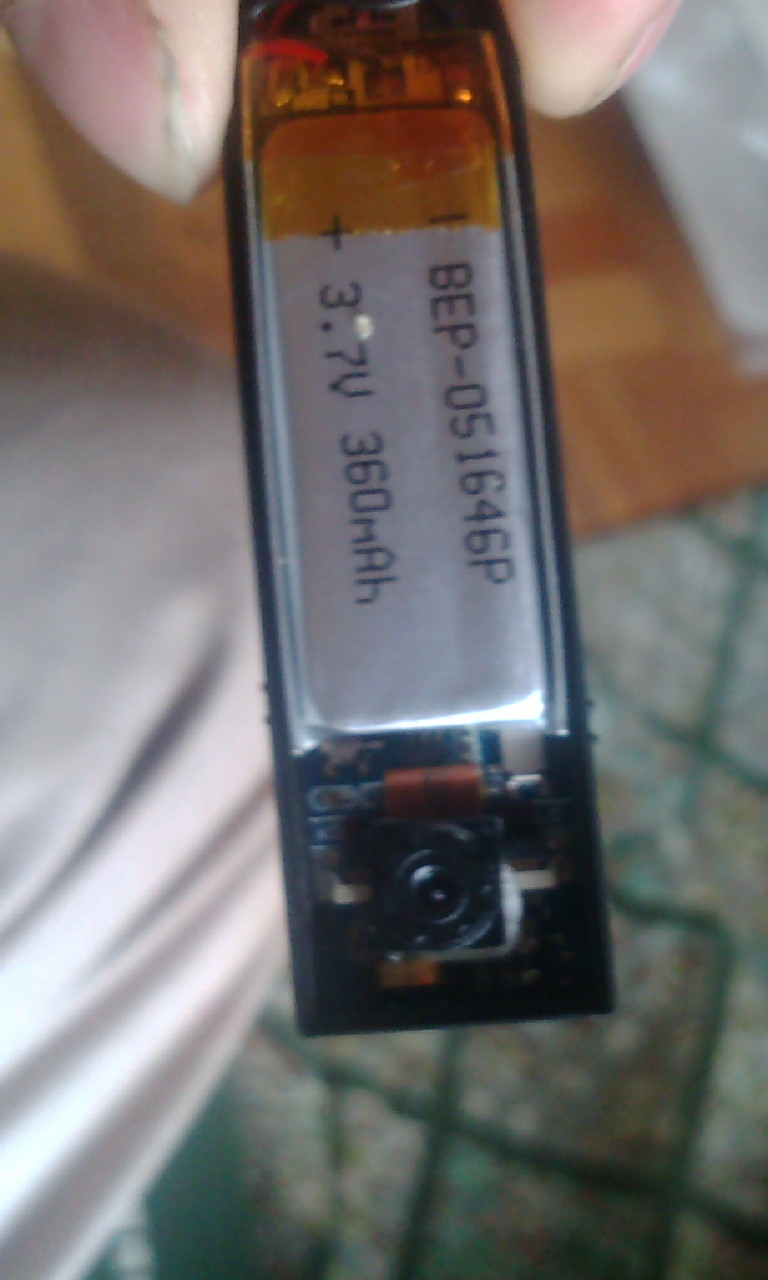 私らしく早速分解してみました。て言うかレンズがずれていたので直しました。バッテリーはリチュームポリマーの360mAが入っていました。バッテリーを使い切るとパーて事ですね!!